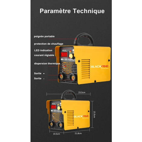 BLACKPINE – Posten bei agrave; Schweißen – Inverter – MMA 300 – Ø 1,6 bis 3,2 mm – 230 V – Mitgeliefert mit 1,2 m Erdungskabel und 1,8 m ÉElektrodenhalter