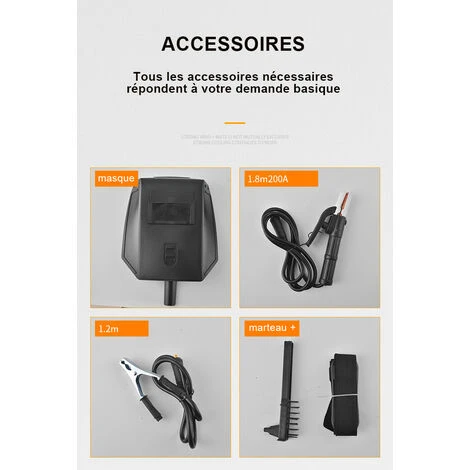 Dank an; seine Inverter-Technologie hat dieser Beitrag; Kompaktes und leichtes Schweißgerät ermöglicht einfaches Schweißen. geliefert bereit zu gehen Mit seinem Elektrodenzubehör, einer 1,8-m-Erdungsklemme, 1 Schweißschutzmaske und 1 Bürstenhammer ist es ideal für das Schweißen von Stahl oder Gusseisen. Es ist kompatibel mit basischen und rutilumhüllten Elektroden.