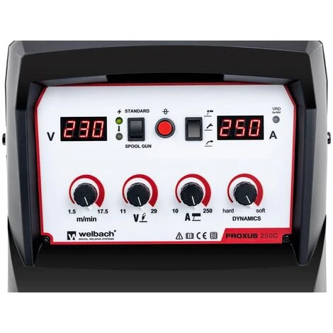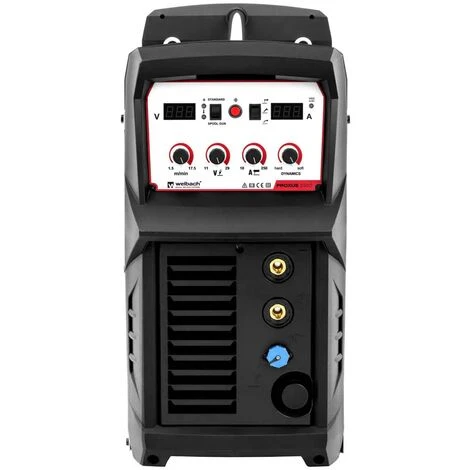 Das MIG/MAG-Schweißgerät PROXUS 250C ist ausgestattet mit IGBT-Inverter-Technologie und bietet höchste Flexibilität wie Qualität. Die Regulierung des Schweißstroms bis 250 A gewährleistet optimale Schweißnähte. Ergänzt wird das Schweißgerät durch die Möglichkeit des Elektroden-Schweißens, wodurch es auch im Außenbereich bei Wind problemlos eingesetzt werden kann. Drehregler sowie zwei LED-Displays stehen Ihnen zur Verfügung, um alle Werte einfach wie direkt zu regeln. Ebenso einfach ist die Auswahl der Schweißmethode zwischen MIG/MAG, WIG Liftarc und MMA.