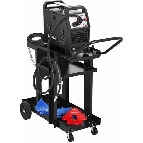 Der Schweißwagen SWG-WC-1 zeichnet sich durch eine sehr stabile Konstruktion aus und ist aus langlebigem, schwarz lackiertem Stahl gefertigt. Dadurch können Sie mit dem Wagen neben dem Schweißgerät auch noch Zubehör bis zu einem Gesamtgewicht von 75 kg transportieren. Mit Hilfe der Bedienungsanleitung lässt sich der Schweißwagen ohne viel Aufwand aufbauen.