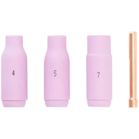 WIG Brenner SWT26TIG8, 4 Gasdüsen, 2 Spannhülsen, Spannhülsengehäuse, kurze Brennerkappe, lange Brennerkappe, Bedienungsanleitung